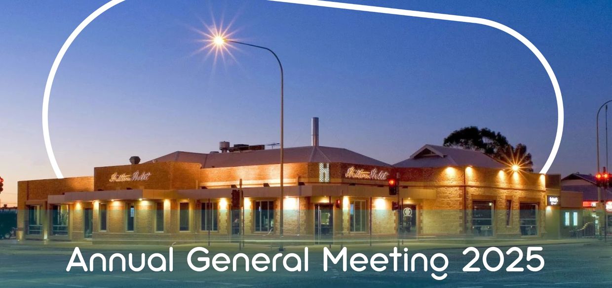 The AGM will be held in the function room of the Hilton Hotel at 264 South Rd, Hilton SA 5033 at 6pm on Thursday 27 November 2025.